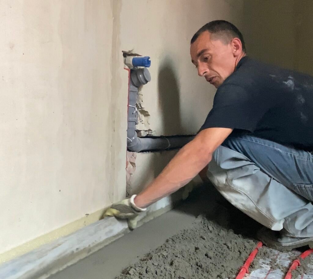 Укладання напівсухих стяжок підлоги та штукатурки стін машинним способом